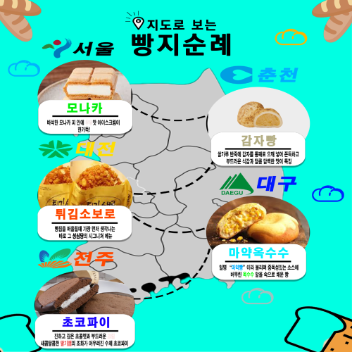 전국 빵 지도는 지역명과 로고를 함께 삽입하여 지역명을 뚜렷하게
