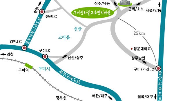 - 서울경기방면 : 중부내륙고속도로→상주IC→25번 국도→도개교차로 군위/소보방면→선산대로 신림리방면